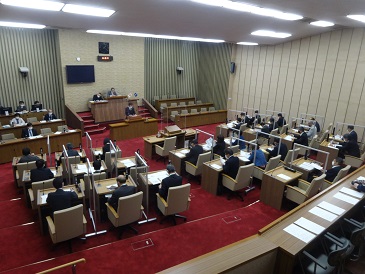 新型コロナウイルス感染症の経済対策等を盛り込んだ令和3年度松阪市一般会計補正予算(第1号)のほか議案4件が上程され、執行部から提案説明が行われ、質疑の後、それぞれの常任委員会に付託されました。