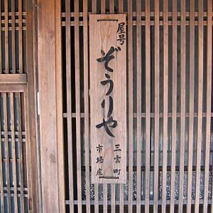 「ぞうりや」や「かご大」、「合羽屋」など、名前だけで、商売がわかる屋号。昔から使われている屋号の看板をそれぞれの家に取り付けている。