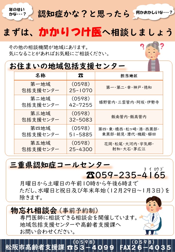 | 松阪市第五地域包括支援センター | Tel25-4300 Fax25-3131 |