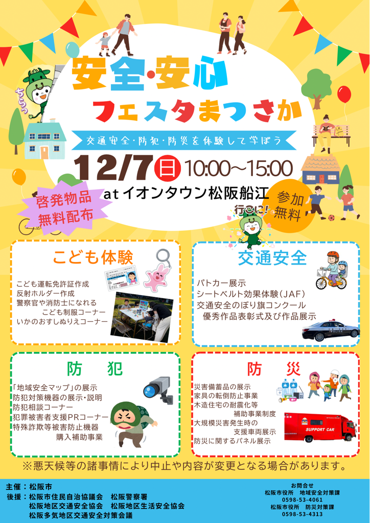 安全安心を考える、体験する、「安全・安心フェスタまつさか」を開催いたします。