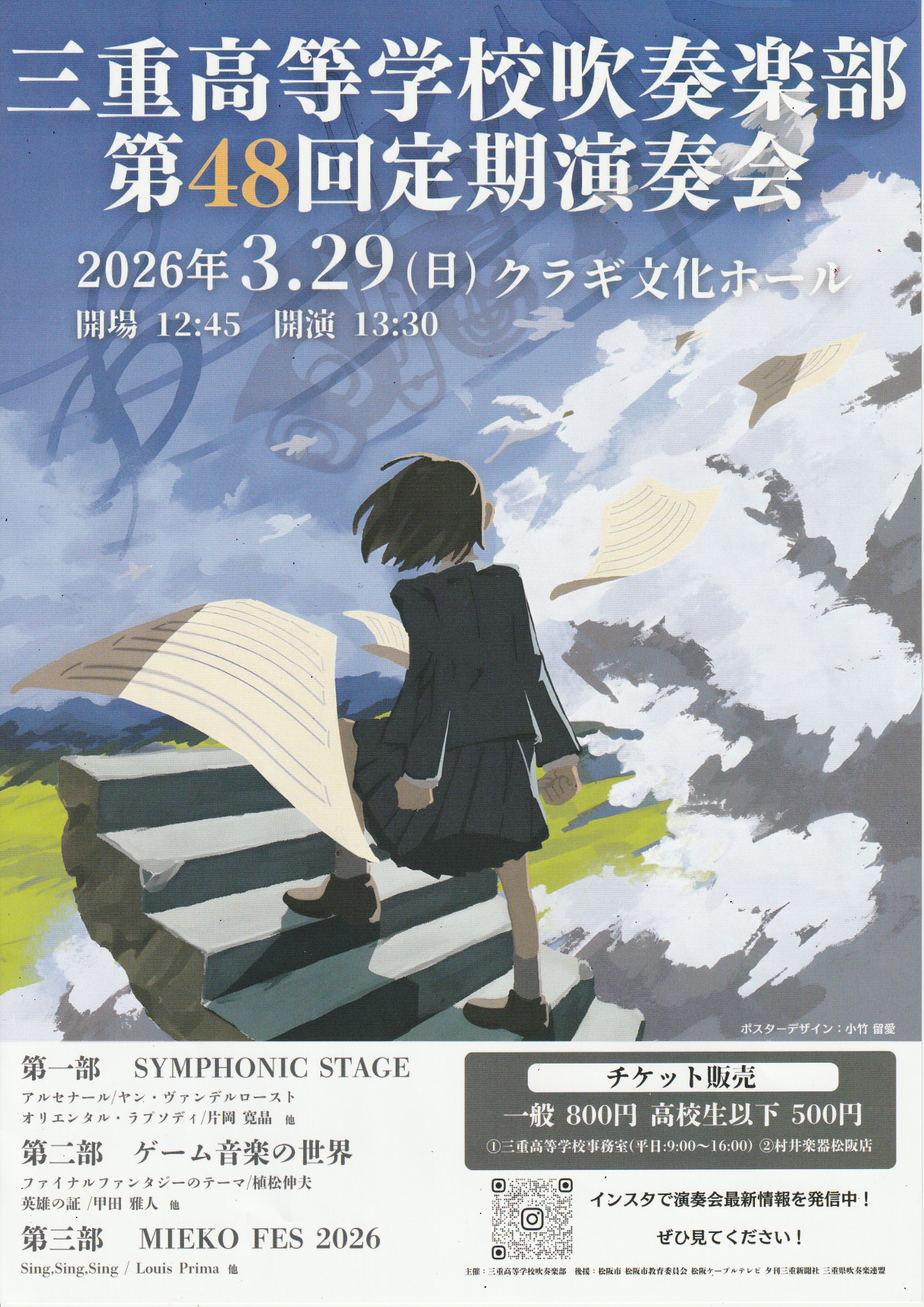 チケット販売先 ●三重高等学校事務室 (平日 9:00~16:00) ●村井楽器松阪店