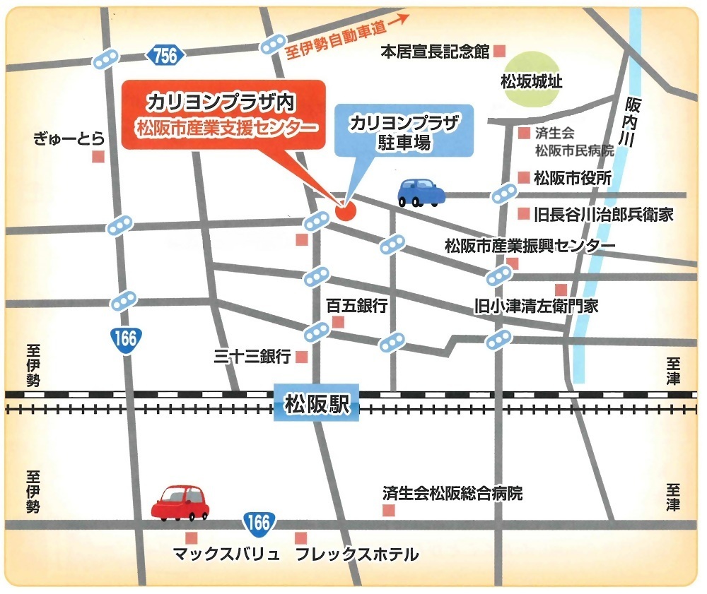 松阪市では、平成29年7月10日 市内の中小企業・小規模事業者を支援する産業支援拠点として、松阪市産業支援センターを日野町のカリヨンプラザ1階に開設いたしました。