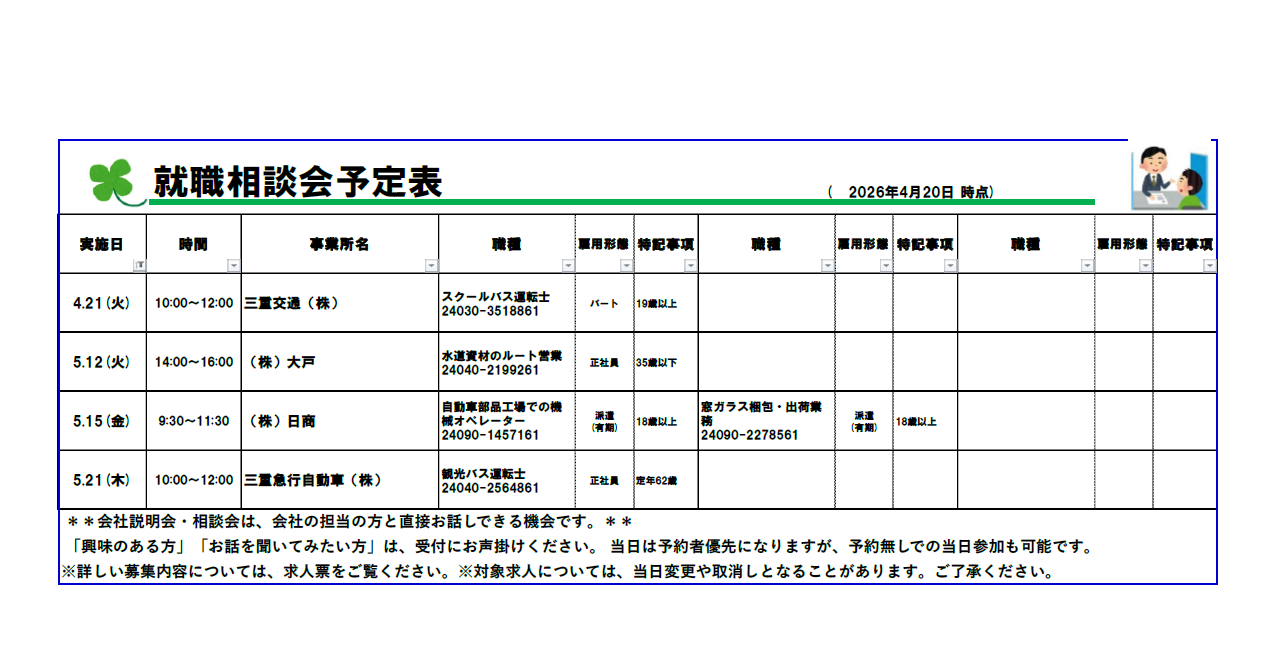 ミニ面接会・説明会予定表(令和8年4月22日) [その他のファイル/159KB]