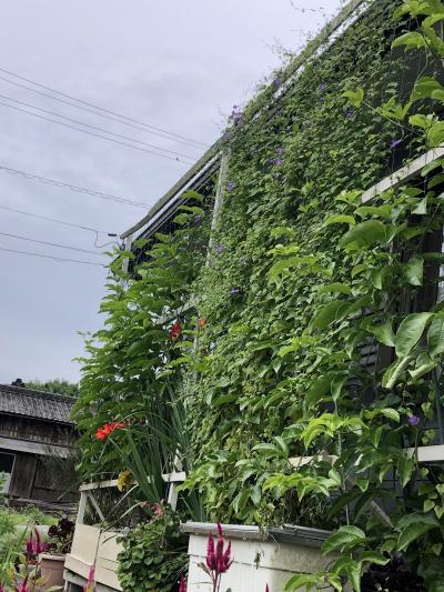来年は、成長が速く丈夫で、日陰が十分期待できるツルムラサキを植えたいと思います。